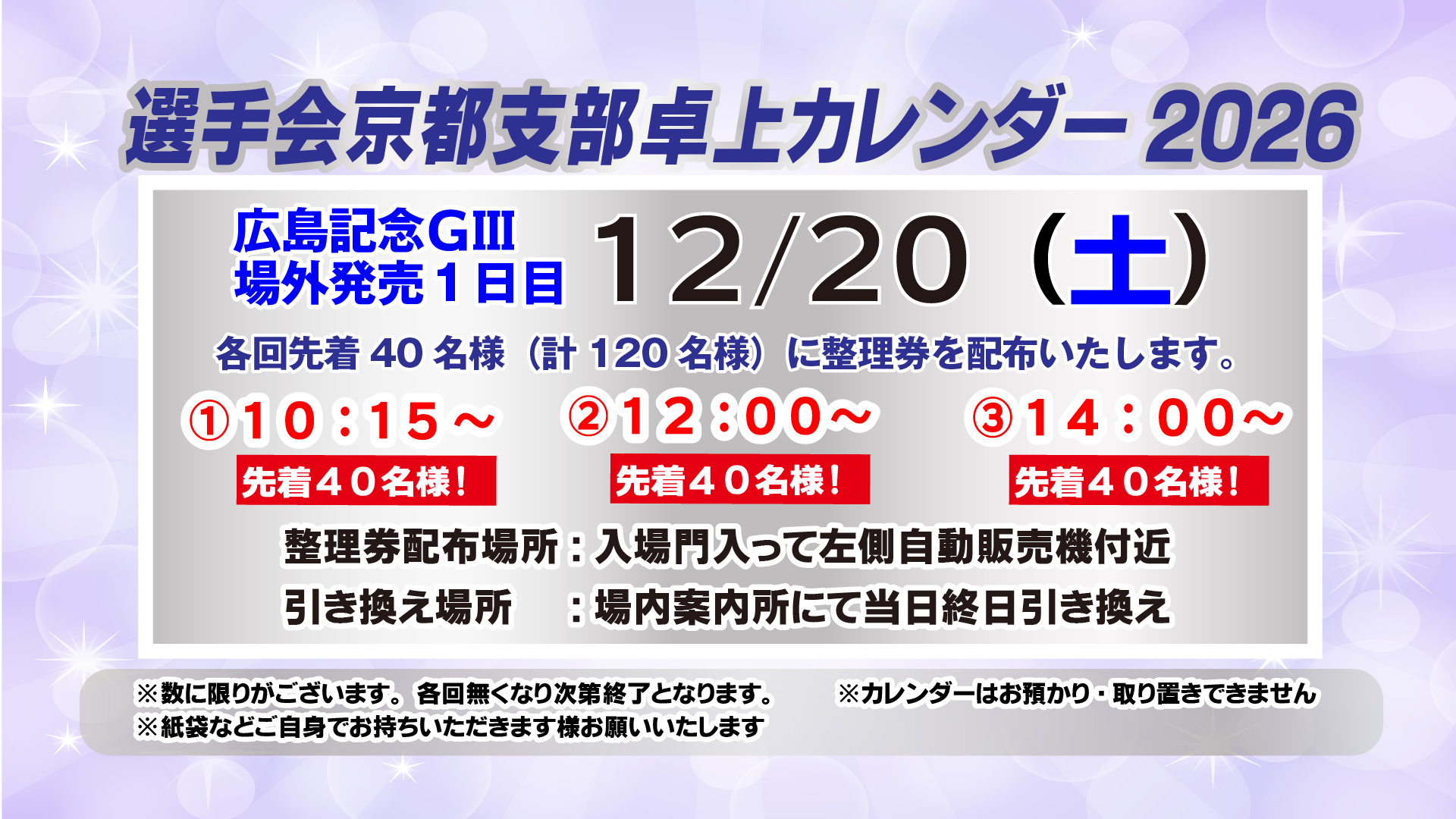 「選手会京都支部オリジナル卓上カレンダー2026」プレゼント!
