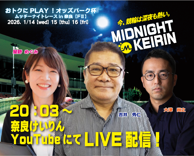 20:30より奈良競輪公式YouTubeチャンネルにてLIVE配信!