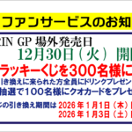 2025年12月16日 / 最終更新日時 : 2025年12月16日 muko8874 イベント 新春ラッキーくじ実施! 新春ラッキーくじを実施いたします! ★引き換えに来られた方全員にドリンクプレゼント★ さらに抽選で100名様にクオカードをプレゼント!! ■くじ配布日 12月30日(火) KEIRINグランプ […]
